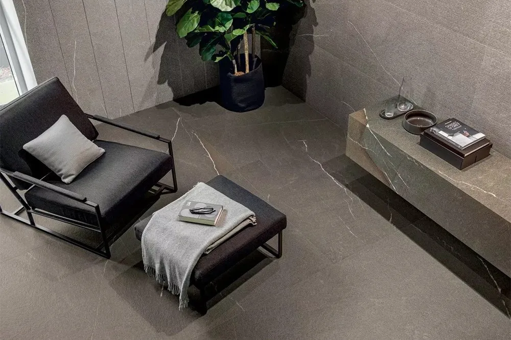Florim’s Coretech collection takes Piasentina stone quarried in the foothills of the Julian Alps and